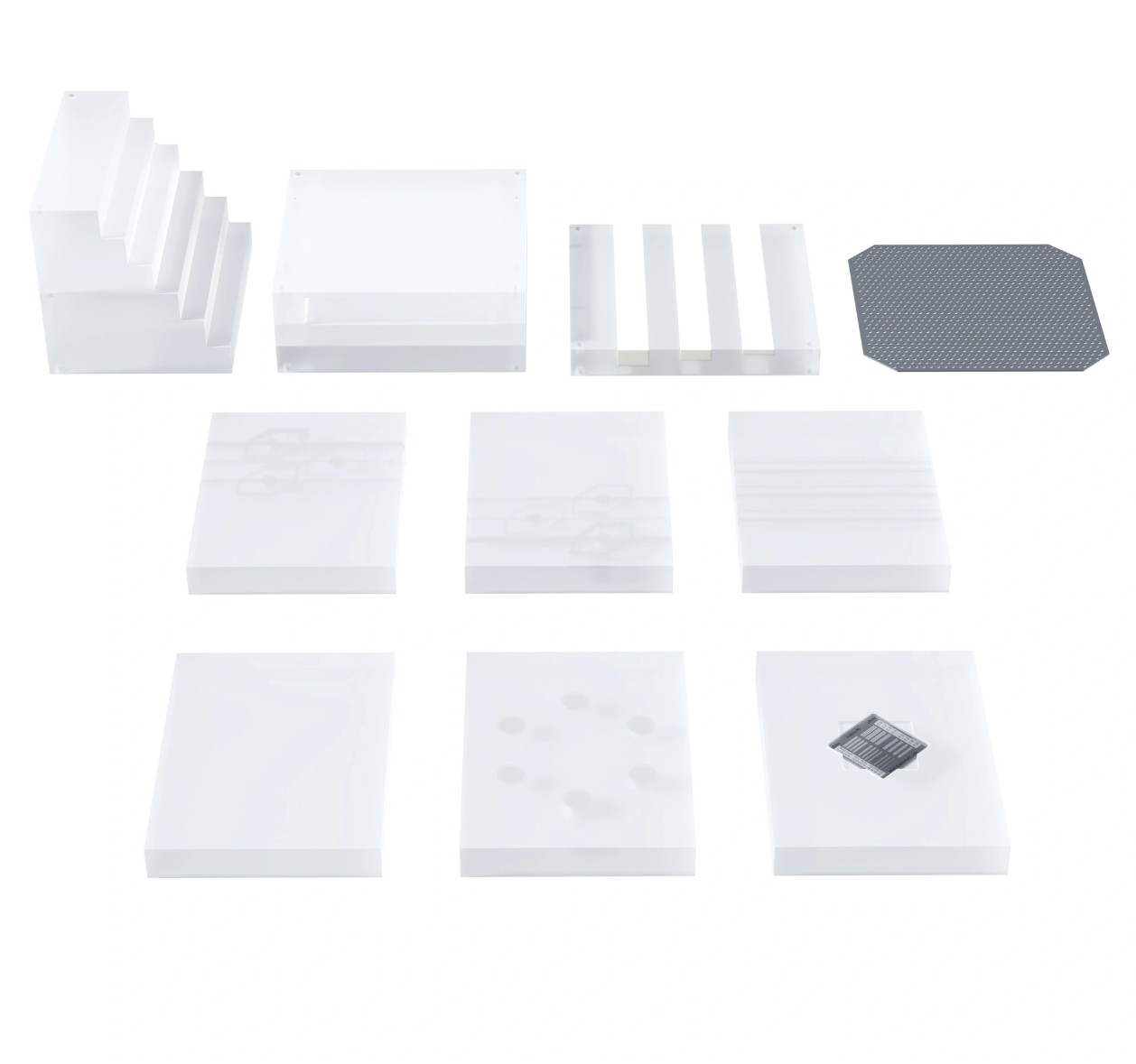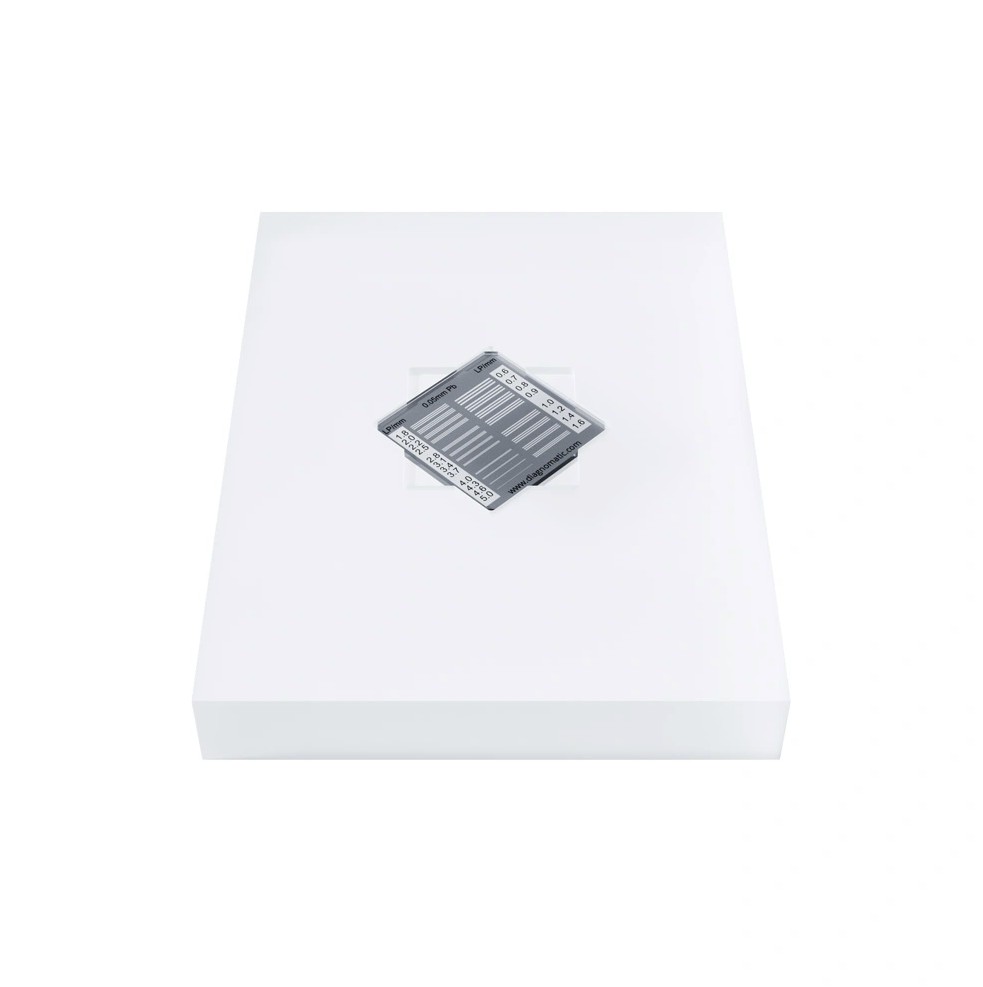 - Thanks to the dedicated recesses, test pattern can be placed in different orientations.