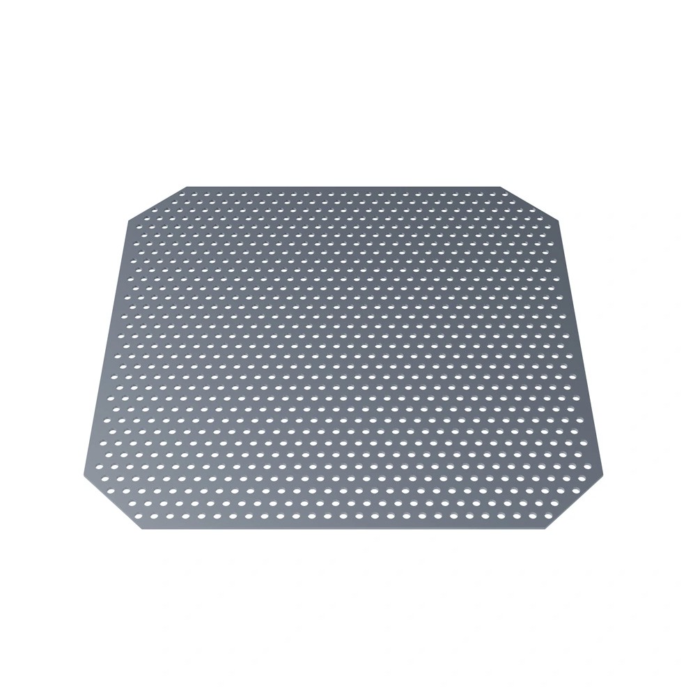 - Made of aluminium with an array of 3.18 mm holes.